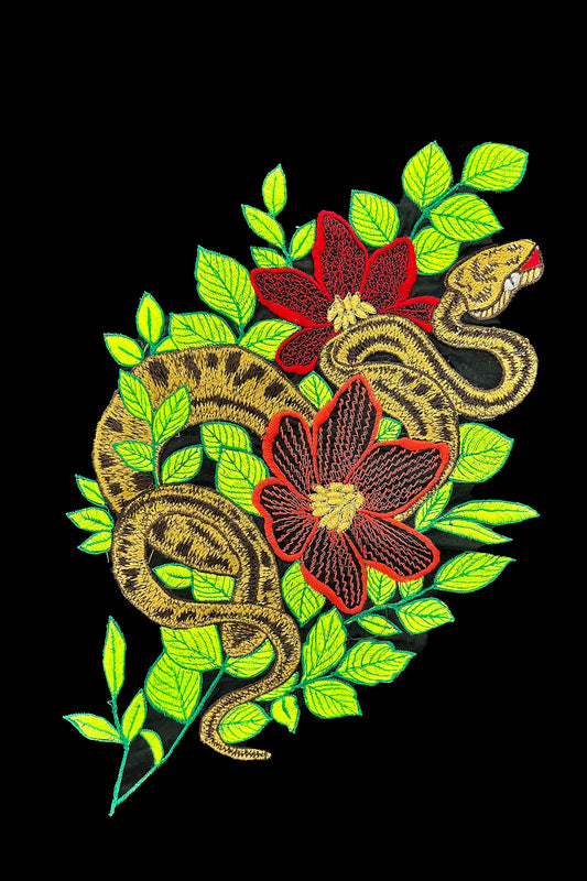 Rose Snake Embroidered Loose Fit Unisex Hoodie