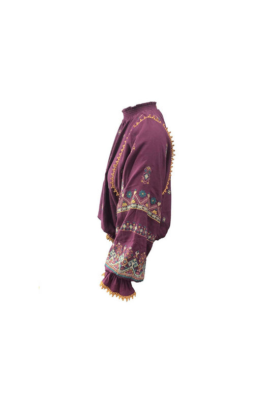 Tribal Embroidered Artwork Half Sleeve T-shirt For Women
