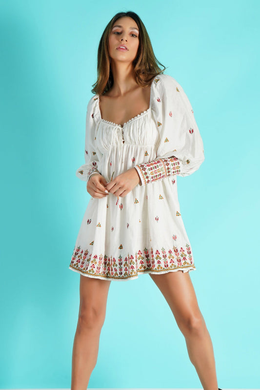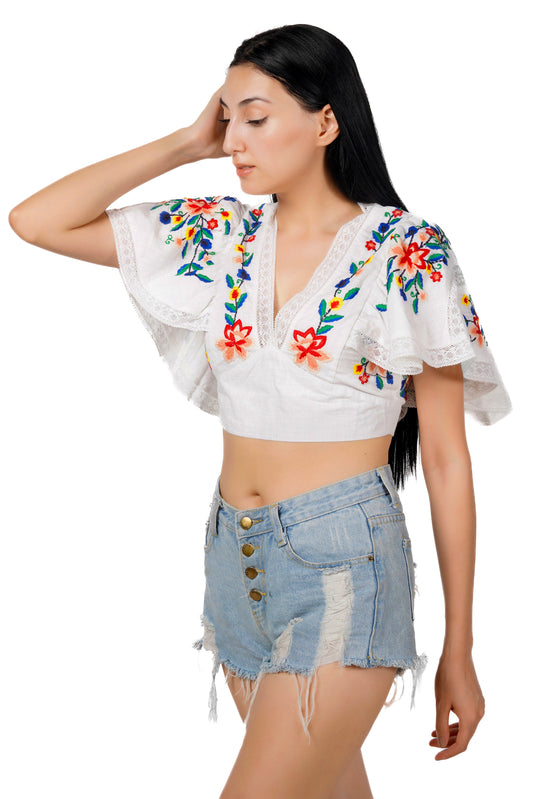 Yasmin Daisy Embroidered White Lace Bodysuit