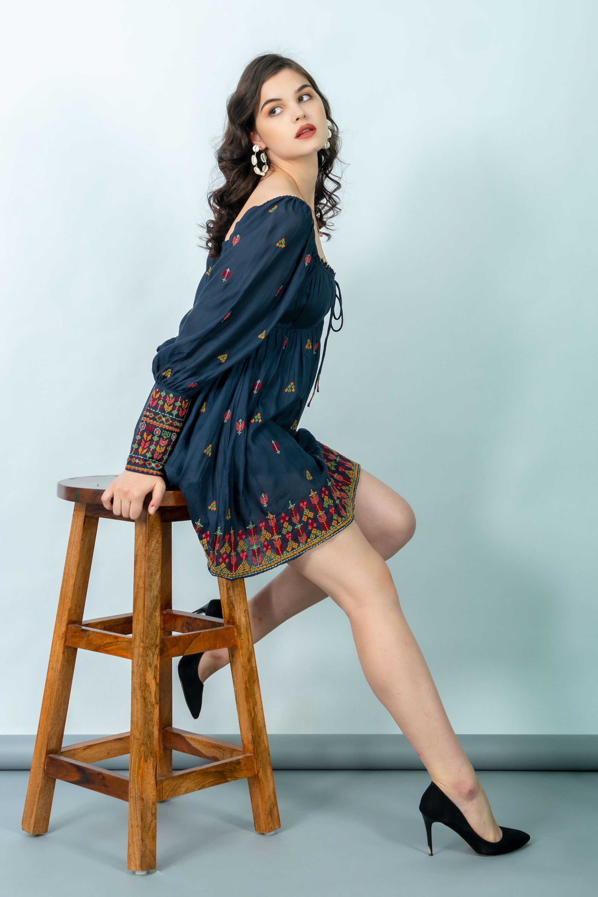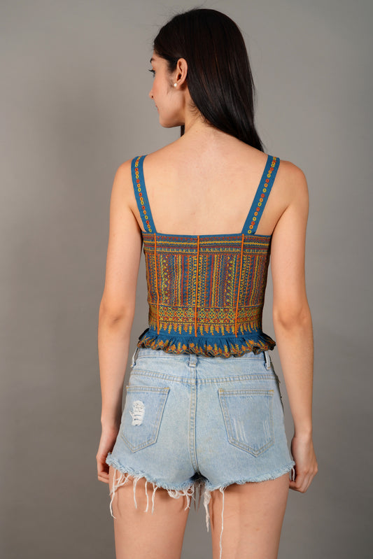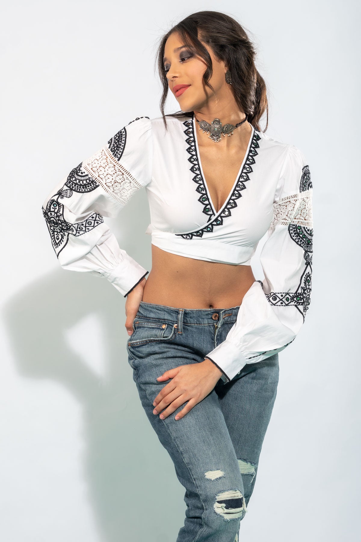 Tribal Embroidered Artwork Half Sleeve T-shirt For Women
