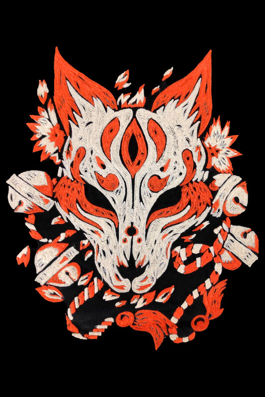 Mascara Kitsune Embroidered Artwork Black Half Sleeve T-shirt For Women