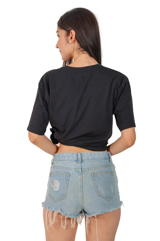 Embroidered Geometric Artwork Half sleeve Black T-shirt For Women
