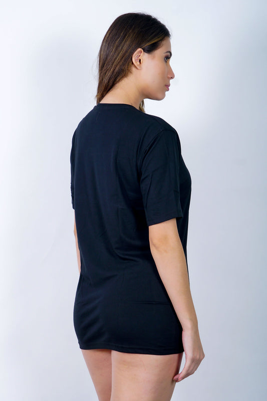 Embroidered Trippy Artwork Half Sleeve Black T-shirt For Women