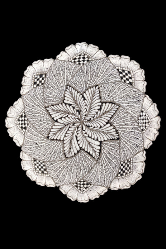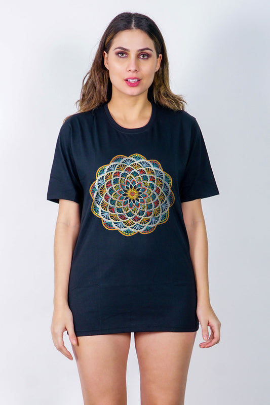 Mandala Embroidery With Zari Artwork Half Sleeve Black T-shirt For Women