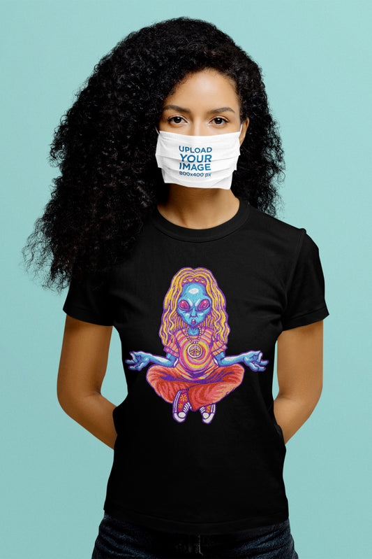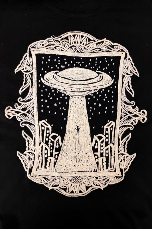 Alien Trip Embroidered Artwork Half Sleeve T-shirt For Women