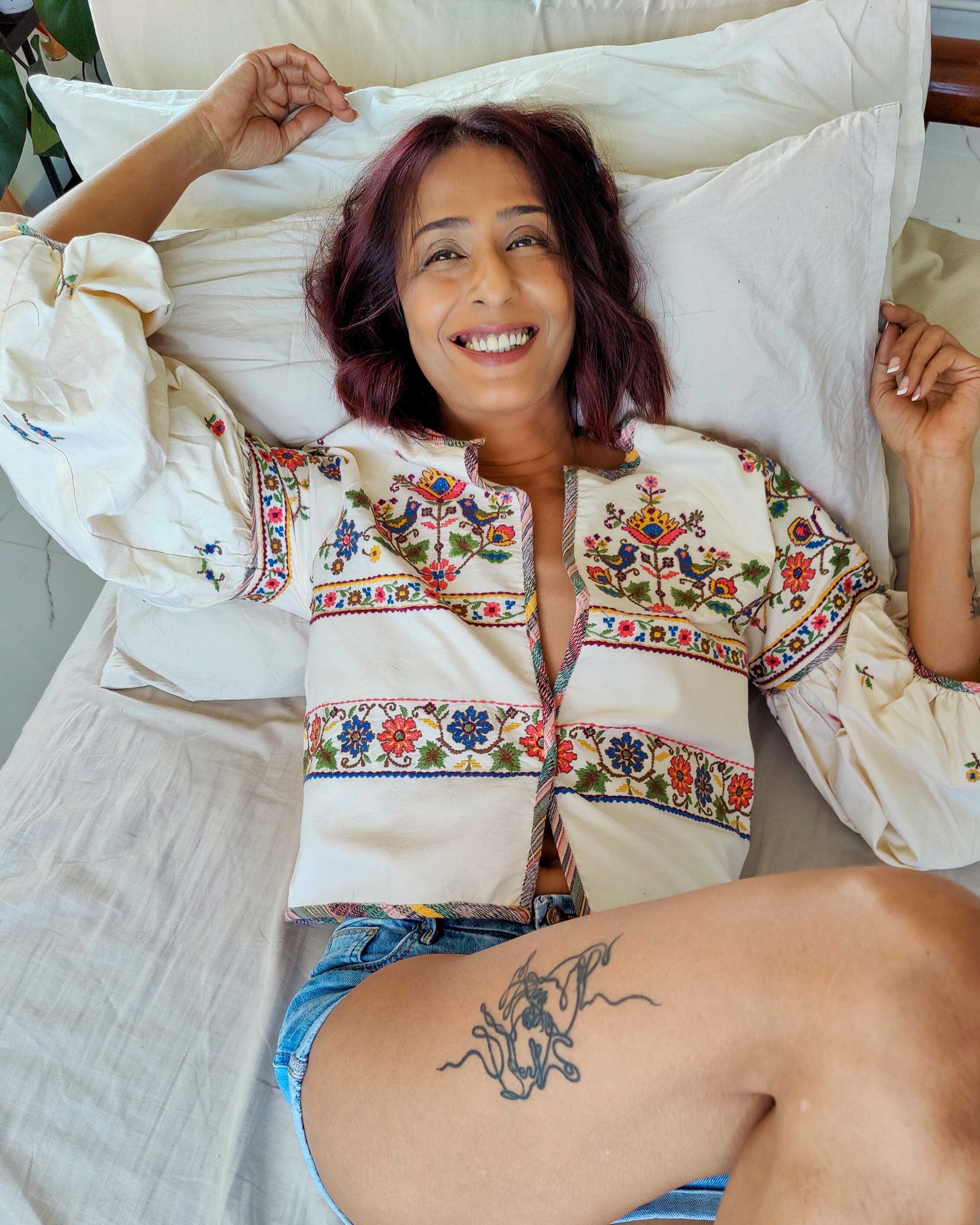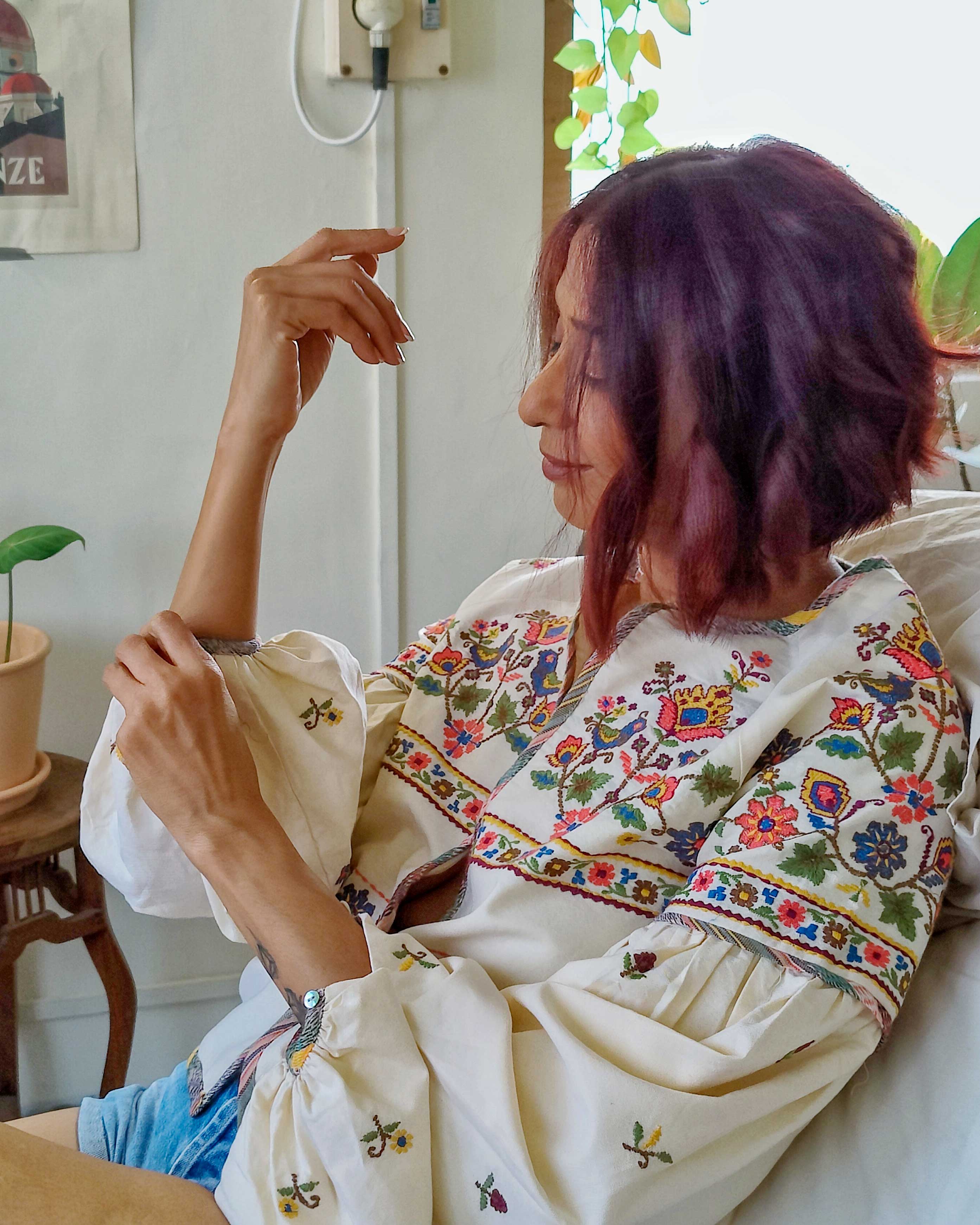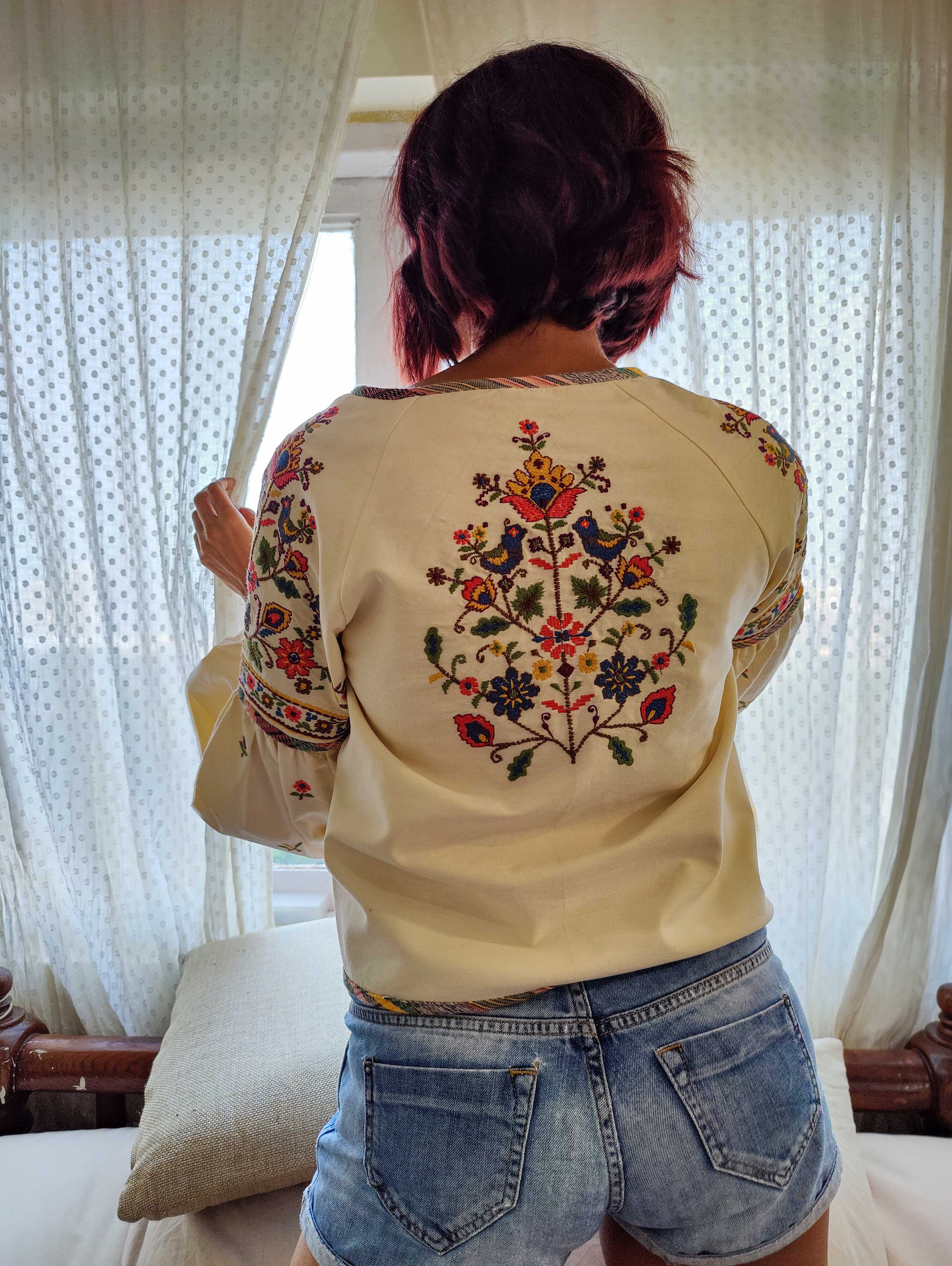 Crafted from Cotton Oxford fabric, this yellow colour jacket features colorful bird and floral embroidery. It has a raglan sleeve and is turned up with Cotton Voile lining, plus accented with Cotton Dobby bold piping for a unique look. Add a touch of funk to your winter wardrobe with this stylish piece.