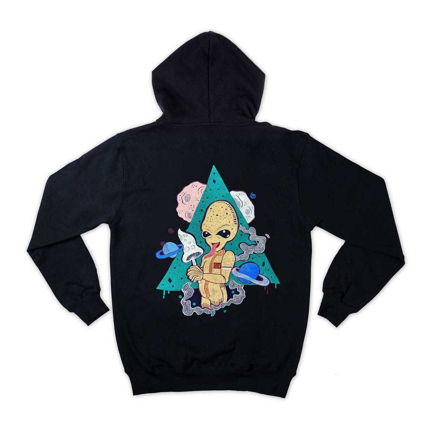 Relaxed-fit Hoodie in 430 GSM cotton fleece with embroidery artwork, jersey-lined, drawstring hood, dropped shoulders, long sleeves, a kangaroo pocket and wide ribbing at the cuffs and hem.