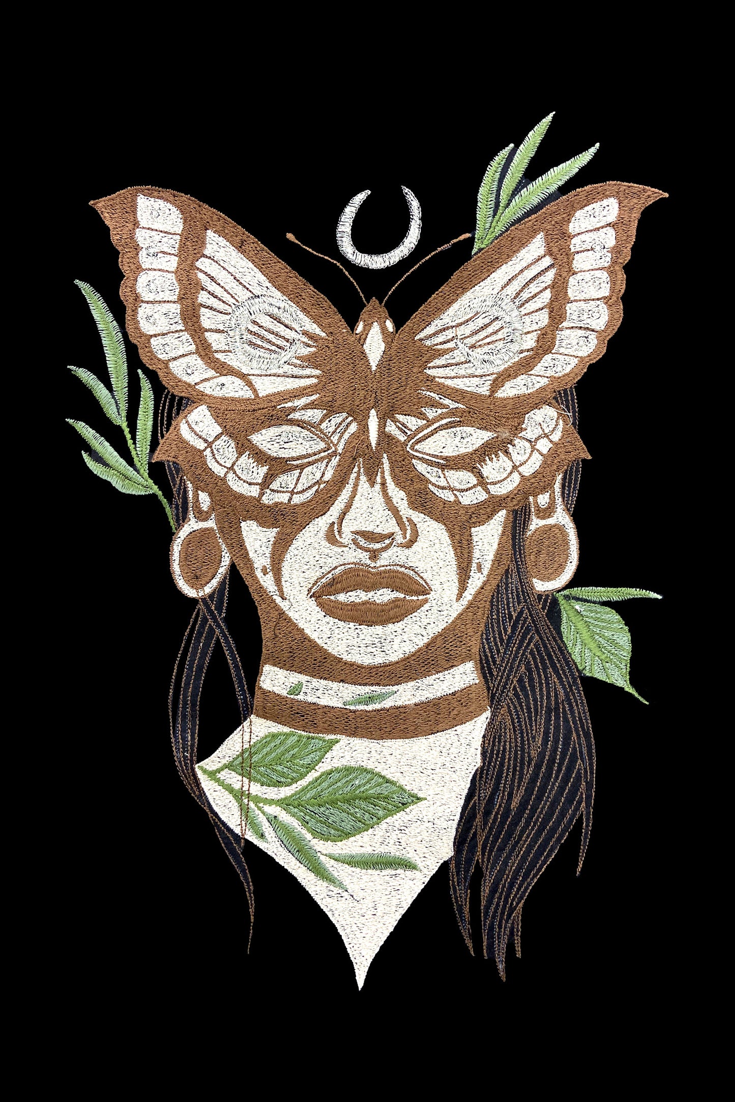 Butterfly Poetry Embroidered Artwork Half Sleeve T-shirt For Women