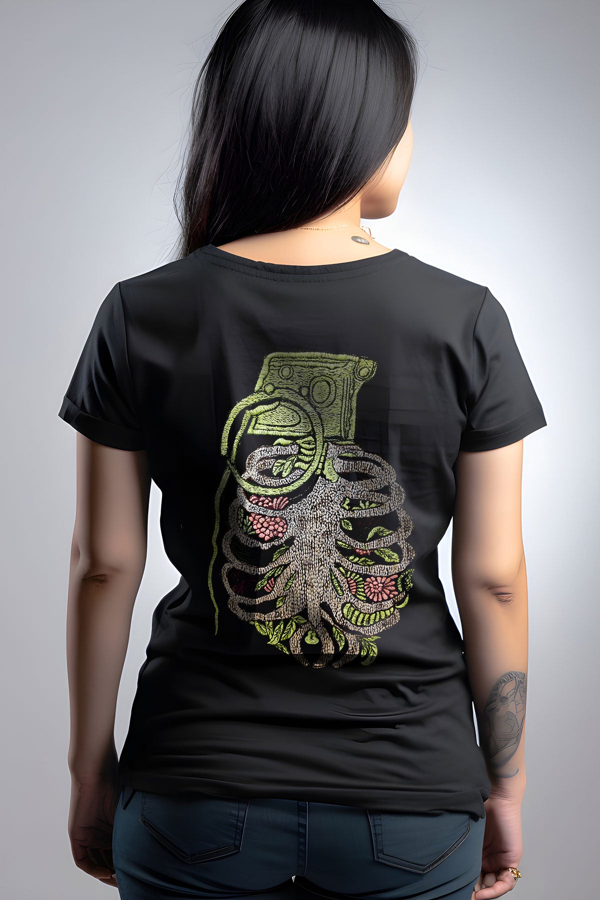 Embroidered Artwork Half Sleeve Black T-shirt For Women
