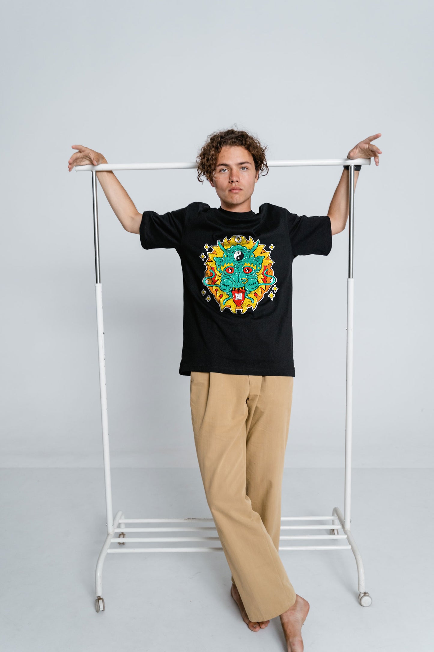Magic Dragon Embroidered Artwork Oversized T-shirt For Men