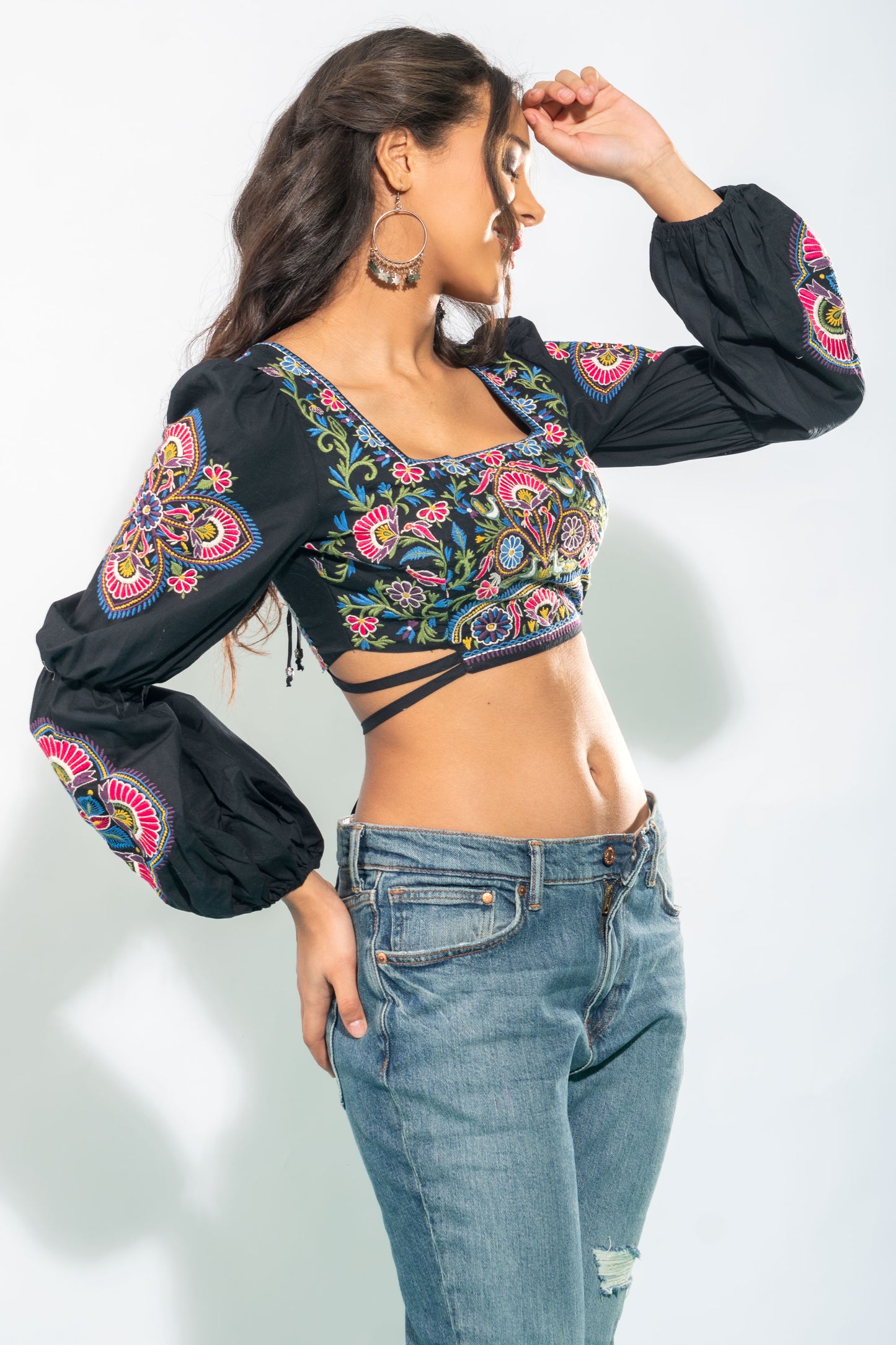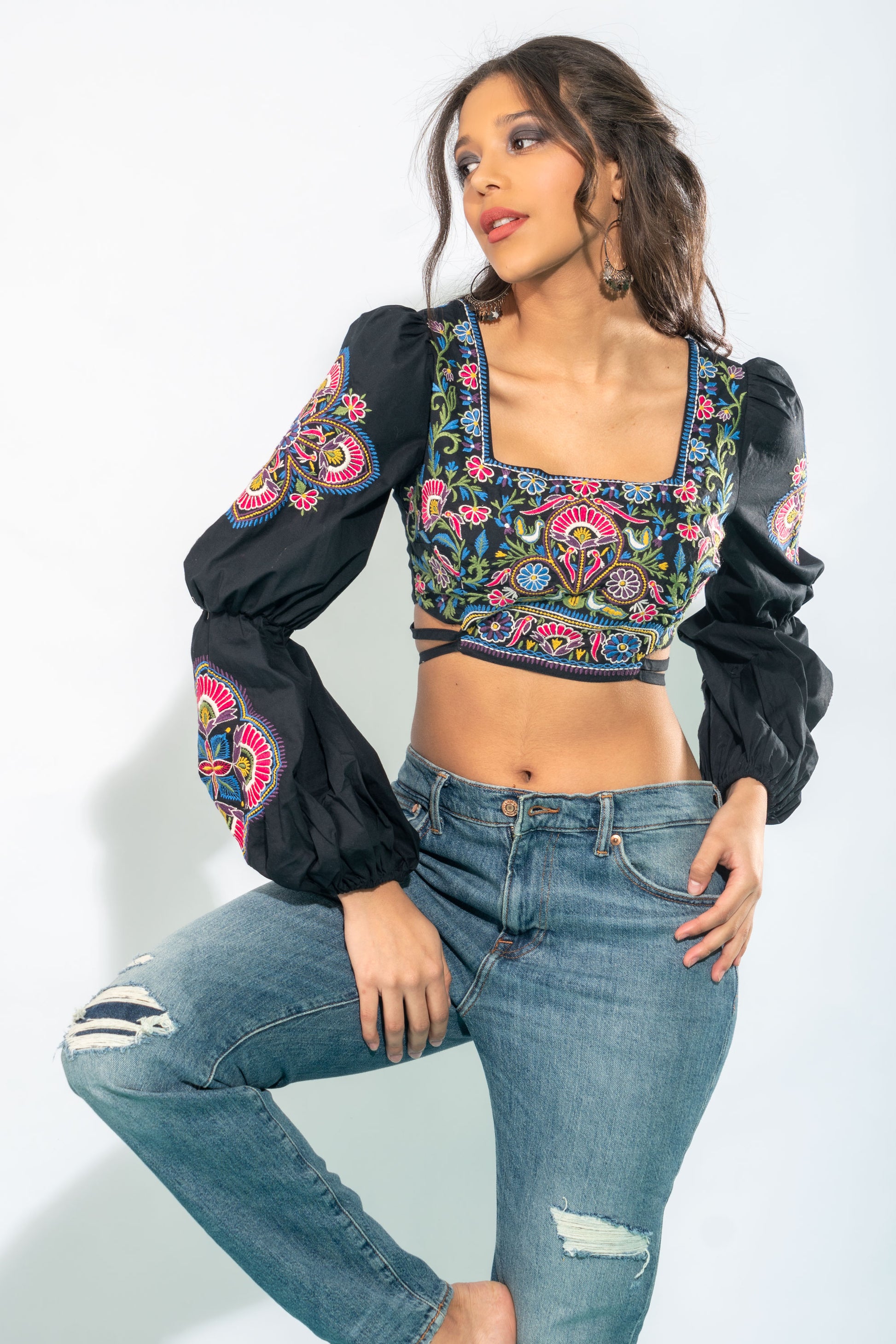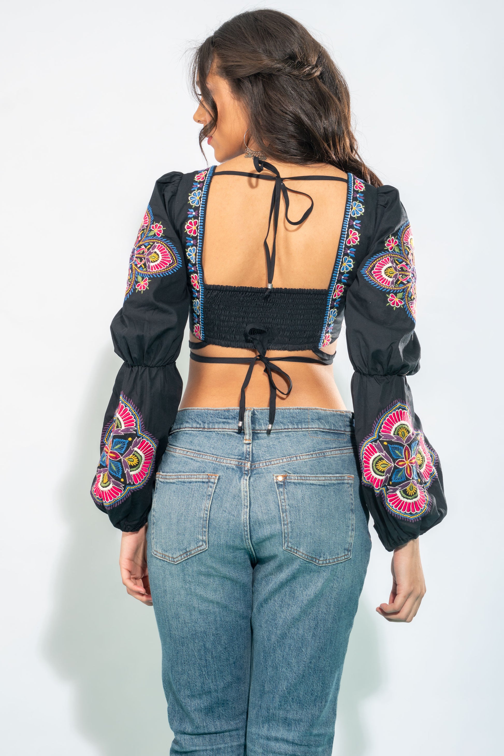 Make a daring fashion statement with the Maysoon Embroidered Crop Top. Crafted in a lightweight cotton fabric, this sexy top is perfect for expressing your daring style. Take risks and stand out from the crowd in the Maysoon Embroidered Crop Top!