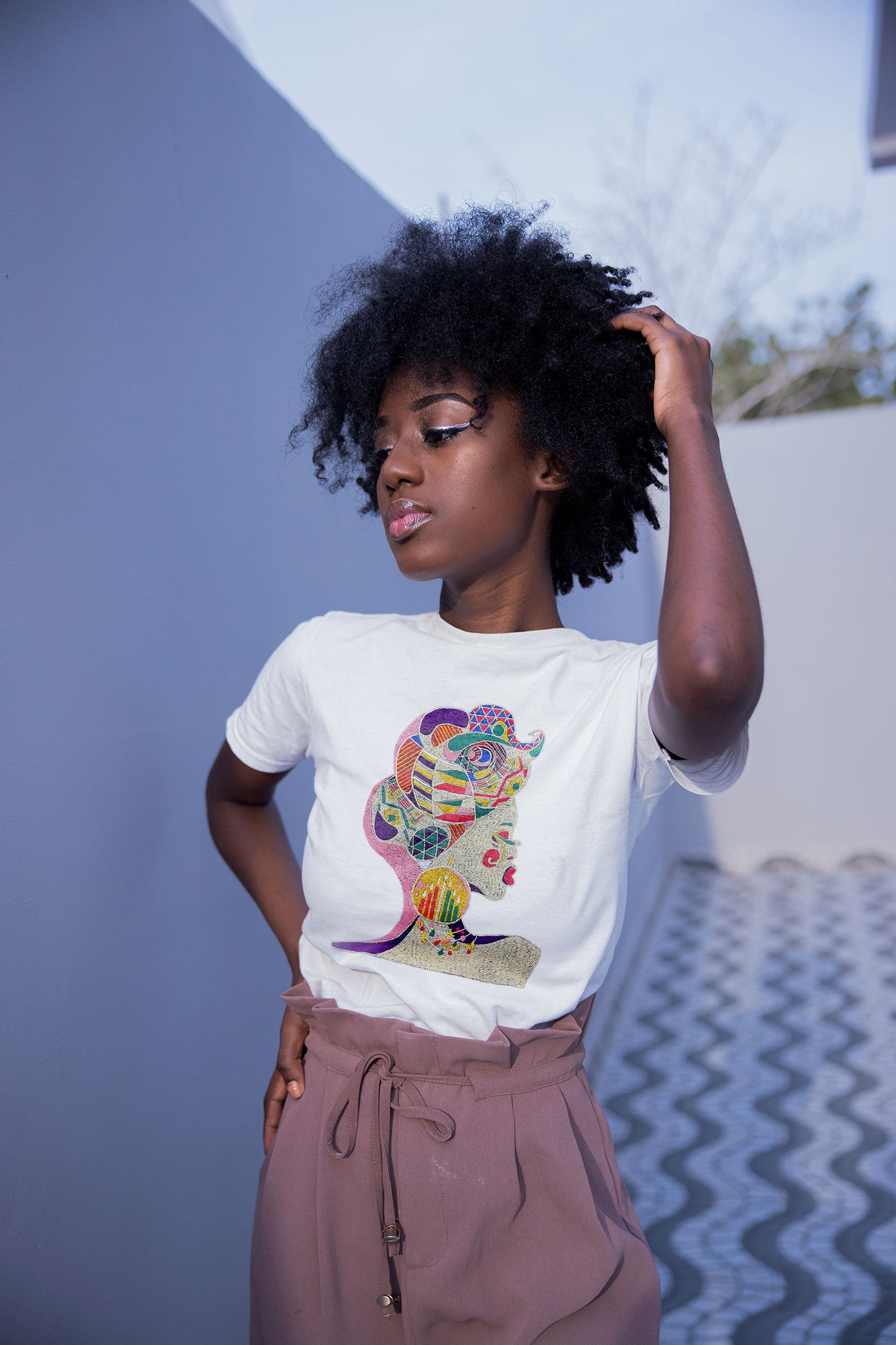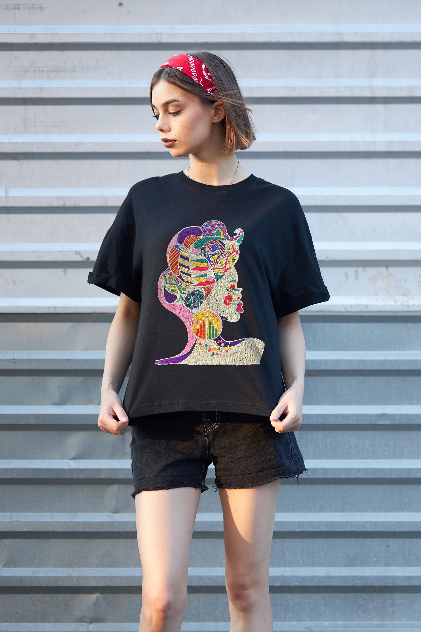Abstract Embroidered Artwork Half Sleeve T-shirt For Women