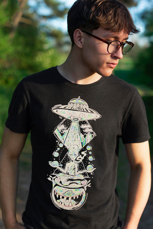Alien Embroidered Artwork Half Sleeve Relaxed Fit T-shirt For Men
