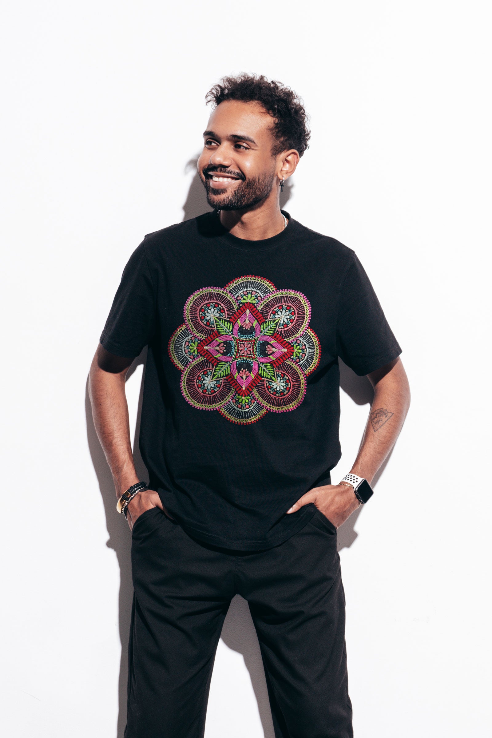 Embroidered Geometric Artwork Oversized T-shirt For Men